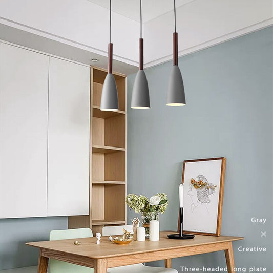 Solid Wood Iron Art Three Heads Hanging Lamp