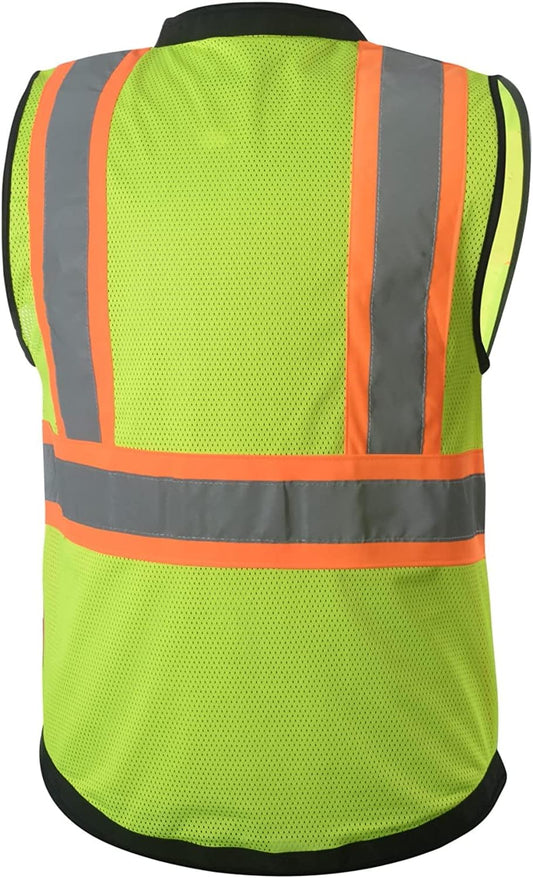 "Stay Visible and Safe with the Surveyor Black/Lime Two Tone Safety Vest - ANSI/ISEA 107-2015 Certified with Photo ID Pocket!"