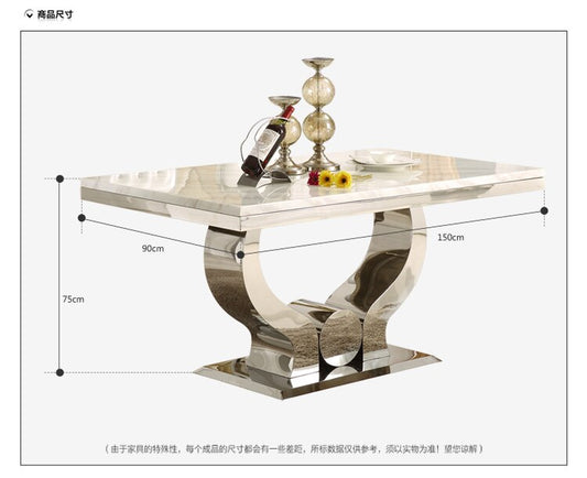 "Modern Minimalist Stainless Steel Dining Room Set with Marble Dining Table and 4 Chairs - Elegant Home Furniture for Dining Area"