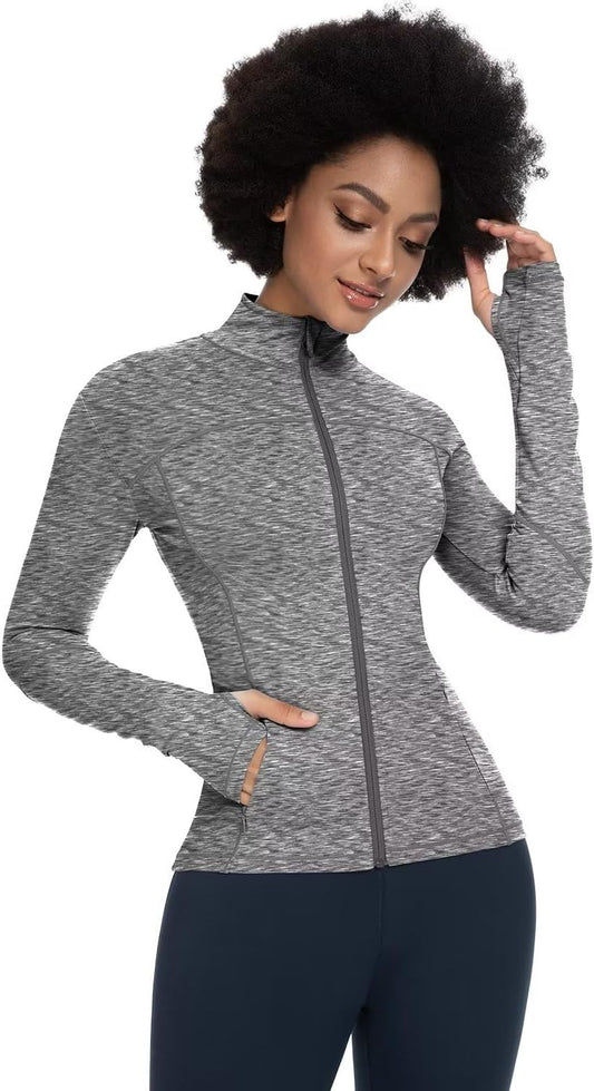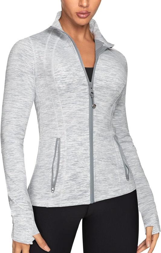 "Enhance Your Workout Experience with the Chic Women's Workout Jacket - Stay Fashionable with Full Zip, Flattering Slim Fit, Featherlight Design, and an Abundance of Convenient Pockets!"