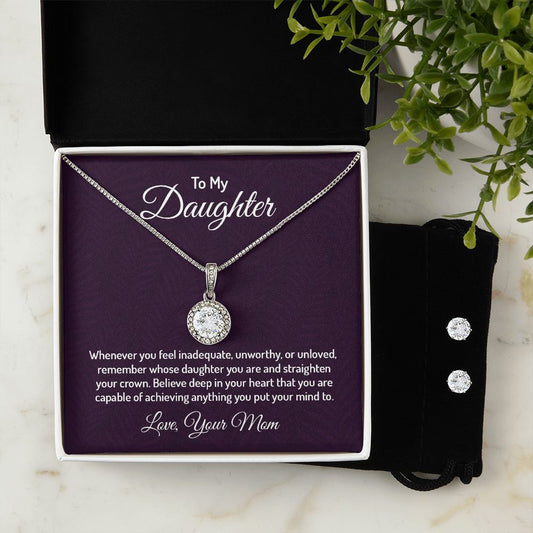 Eternal Hope Necklace and Cubic Zirconia Earring Set - For Daughter From Mom